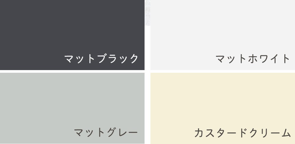- 品番 :マットブラック(10-026)、マットホワイト(10-027)、マットグレー(10-028)、カスタードクリーム(10-029)