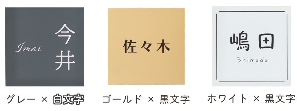 文字入れを行うプレートは「グレーx白文字」「ゴールドx黒文字」「ホワイトx黒文字」の3種から組み合わせを選ぶことが出来ます。
