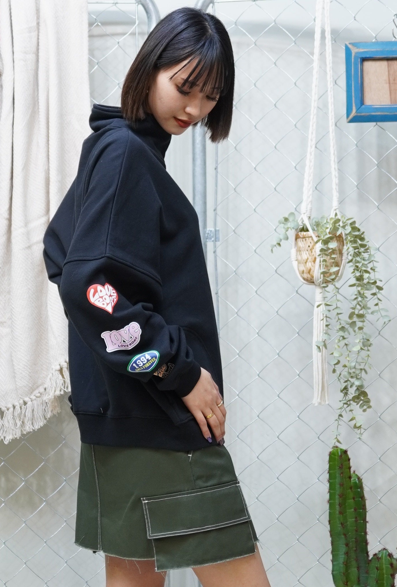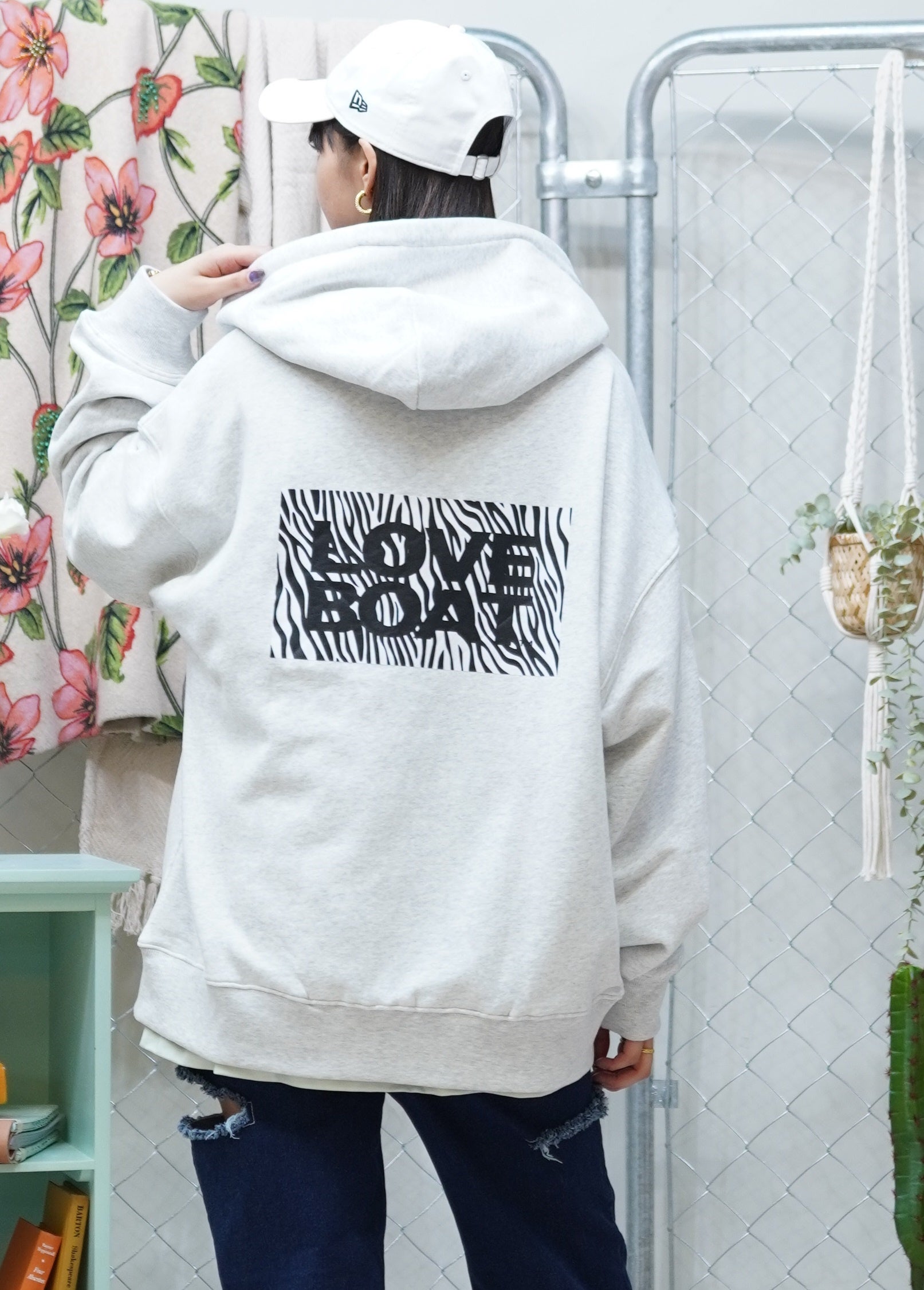 正面には3連になったLOVEBOATロゴ刺繍、背面のBIGハートロゴはぷっくりしたプリントで存在感も抜群なデザインになっています。配色もポイントになっているパーカーです。