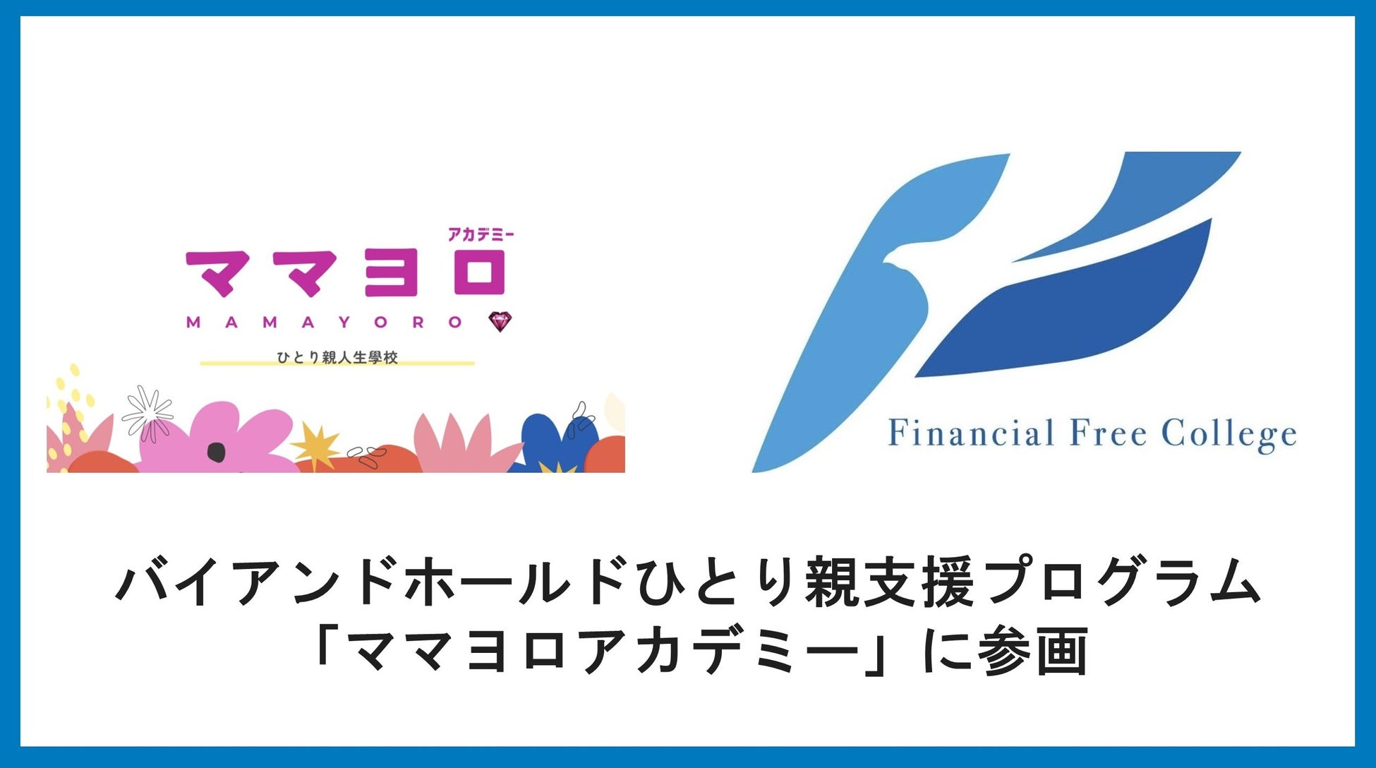 金融教育の「Financial Free College」を運営する株式会社バイアンドホールド(本社:神奈川県逗子 市、代表取締役:山口 貴大)は、ひとり親(シングルマザー)を支援するプログラム「ママヨロアカ デミー」に、月額会費を通じて協賛‧参画し、アンバサダーに就任したことをお知らせいたします。