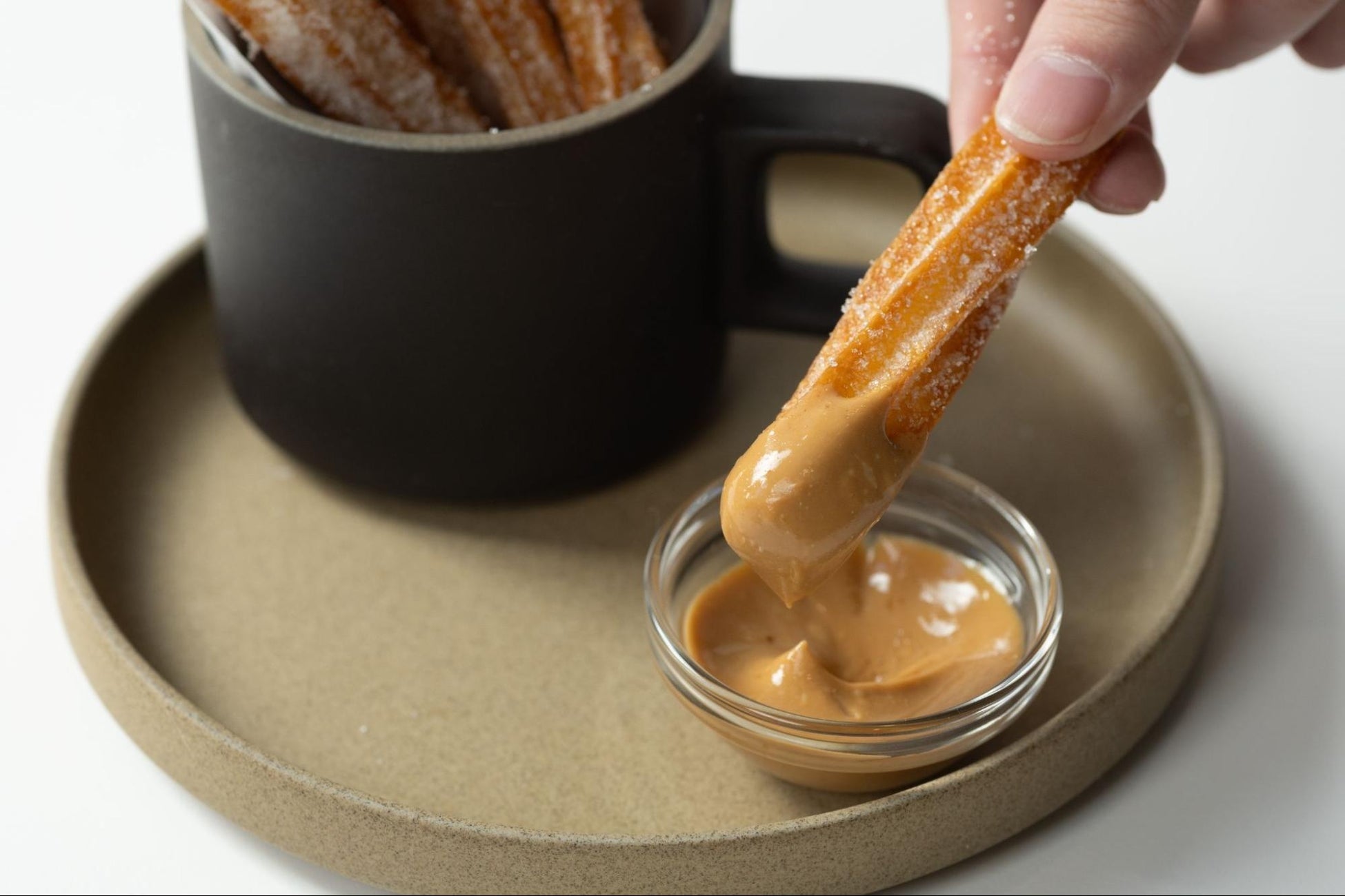 ローファットミルクを濃縮しコクのあるミルクジャムに、ビターなキャラメルクリームを合わせた限定フレーバー