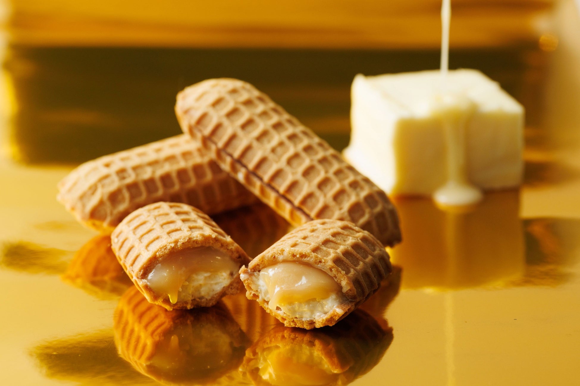無脂肪乳から作ったミルク感たっぷりのジャムを、バターが香り立つゴーフレット(ワッフル)生地でサンド