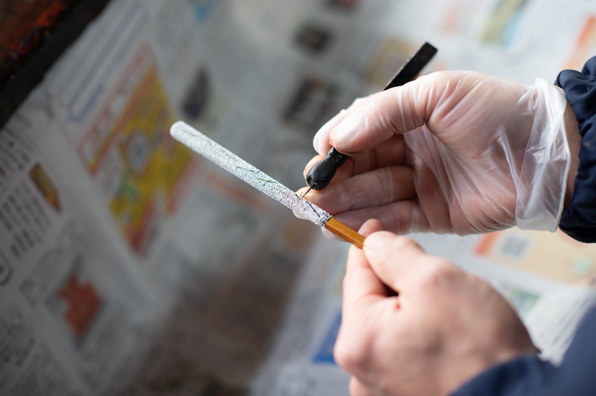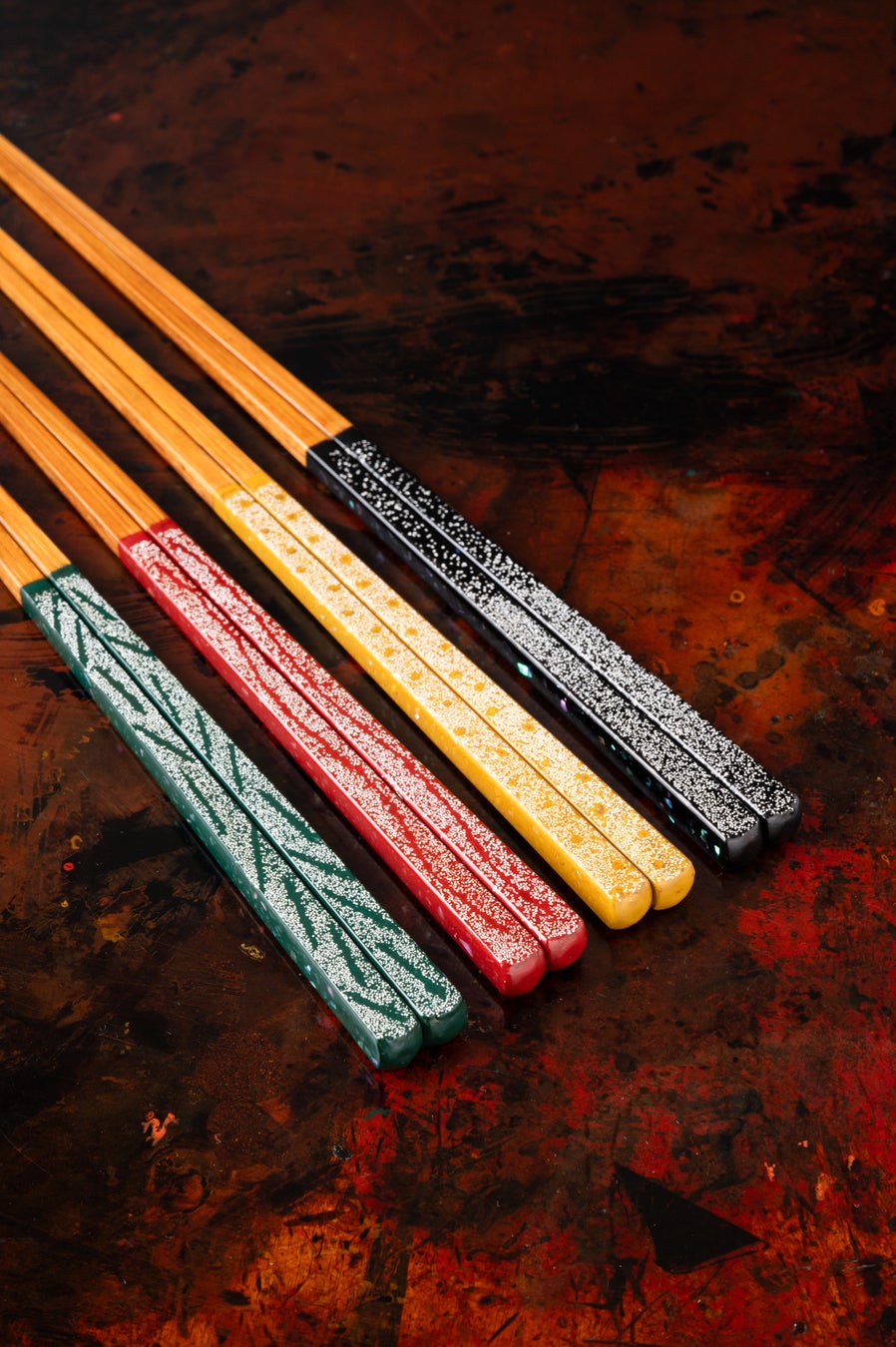 若狭塗の伝統技法「抜き模様」を用いた塗箸。