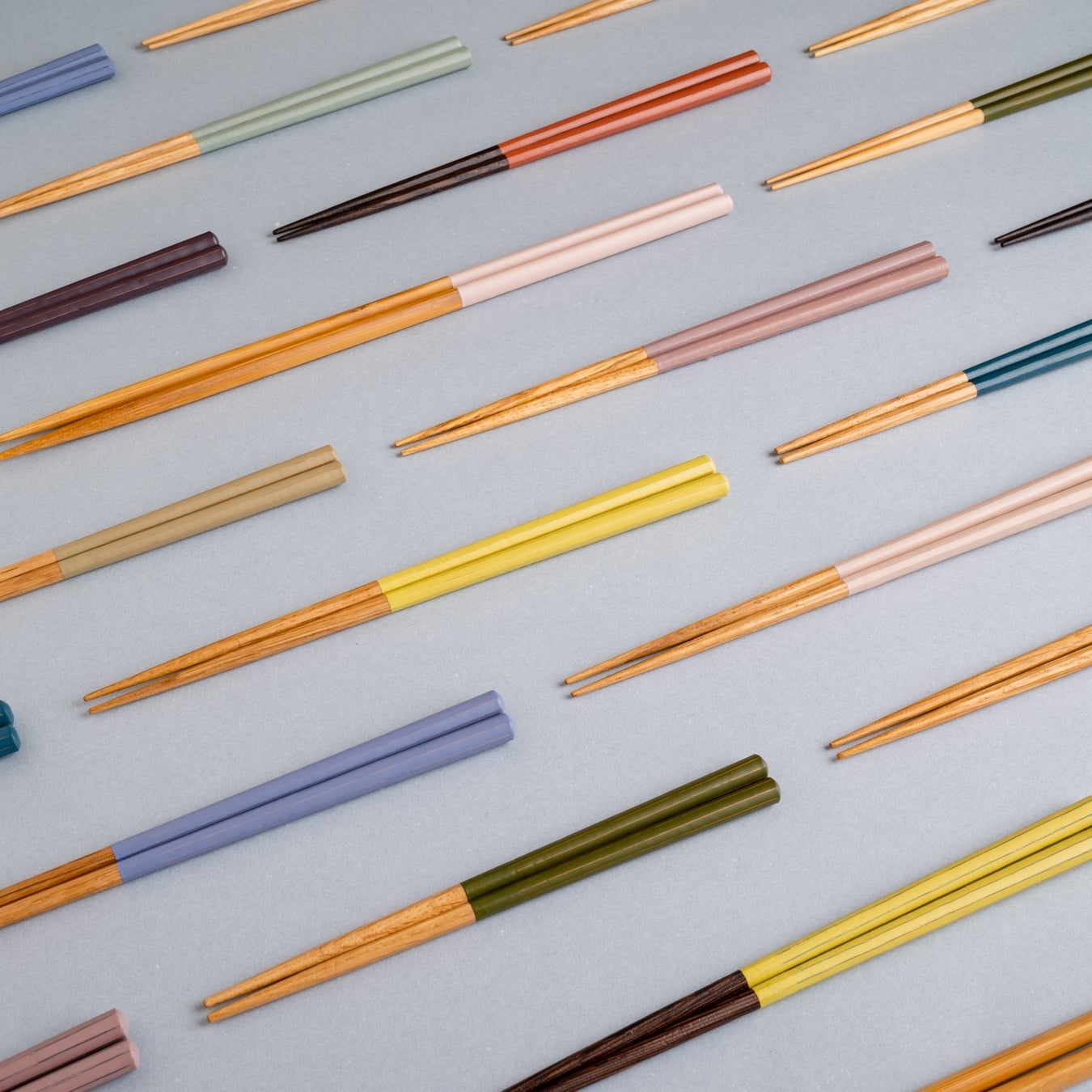 北陸地方特有の天気と日本海に面した空・海が見せてくれる福井県小浜市の柔らかな風景を、お箸に落としこみました。ほっと心を落ち着かせてくれるやわらかな色達です。