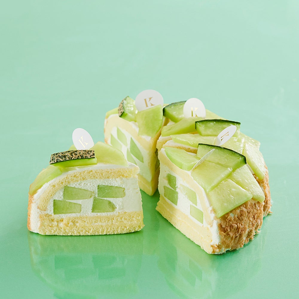 7月は、甘くてみずみずしい、赤肉メロンと青肉メロンをたっぷりとのせた、この季節にぴったりな爽やかな甘さのケーキ「メロンデコレーション」。
