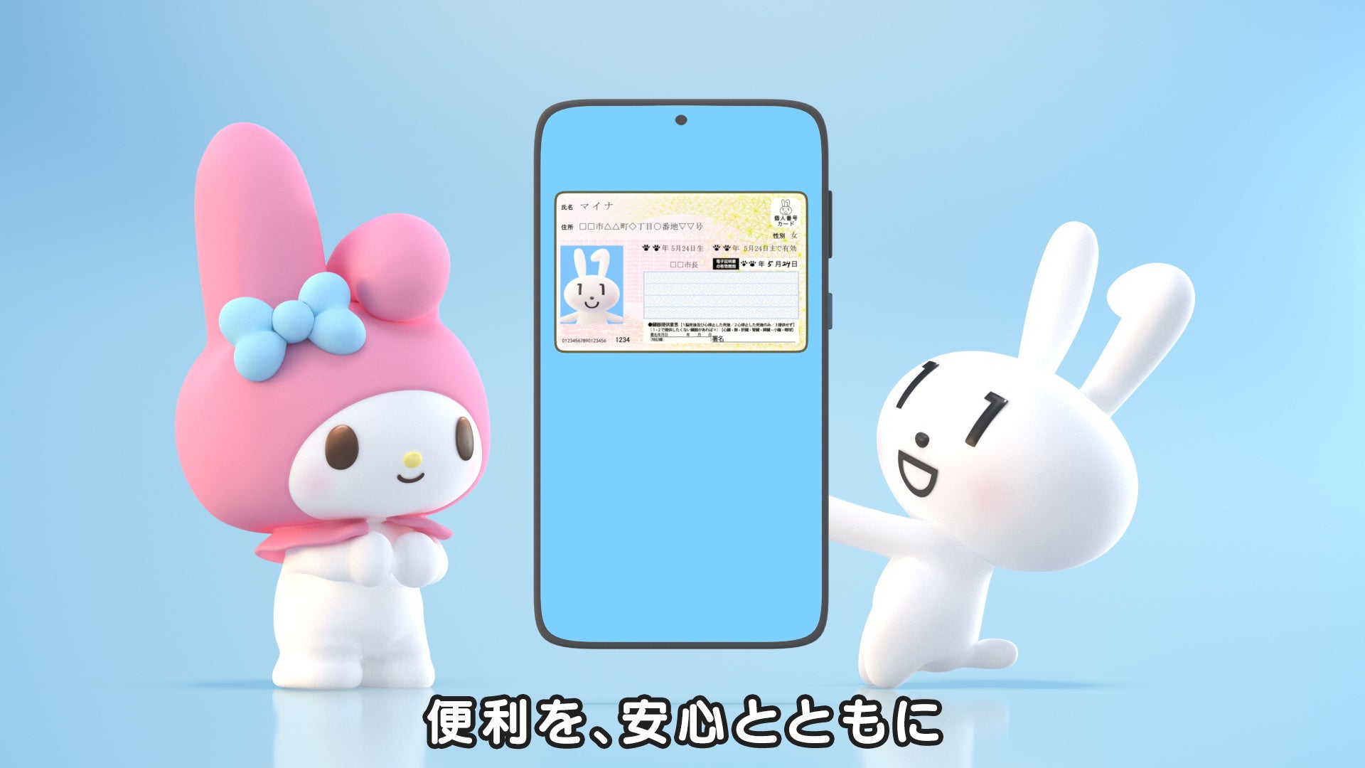 マイナンバーのキャラクター マイナちゃんとマイメロディが共演するテレビCM「マイナンバーカード スマホに入れることができます」篇、2月1日より全国放映開始(デジタル庁)