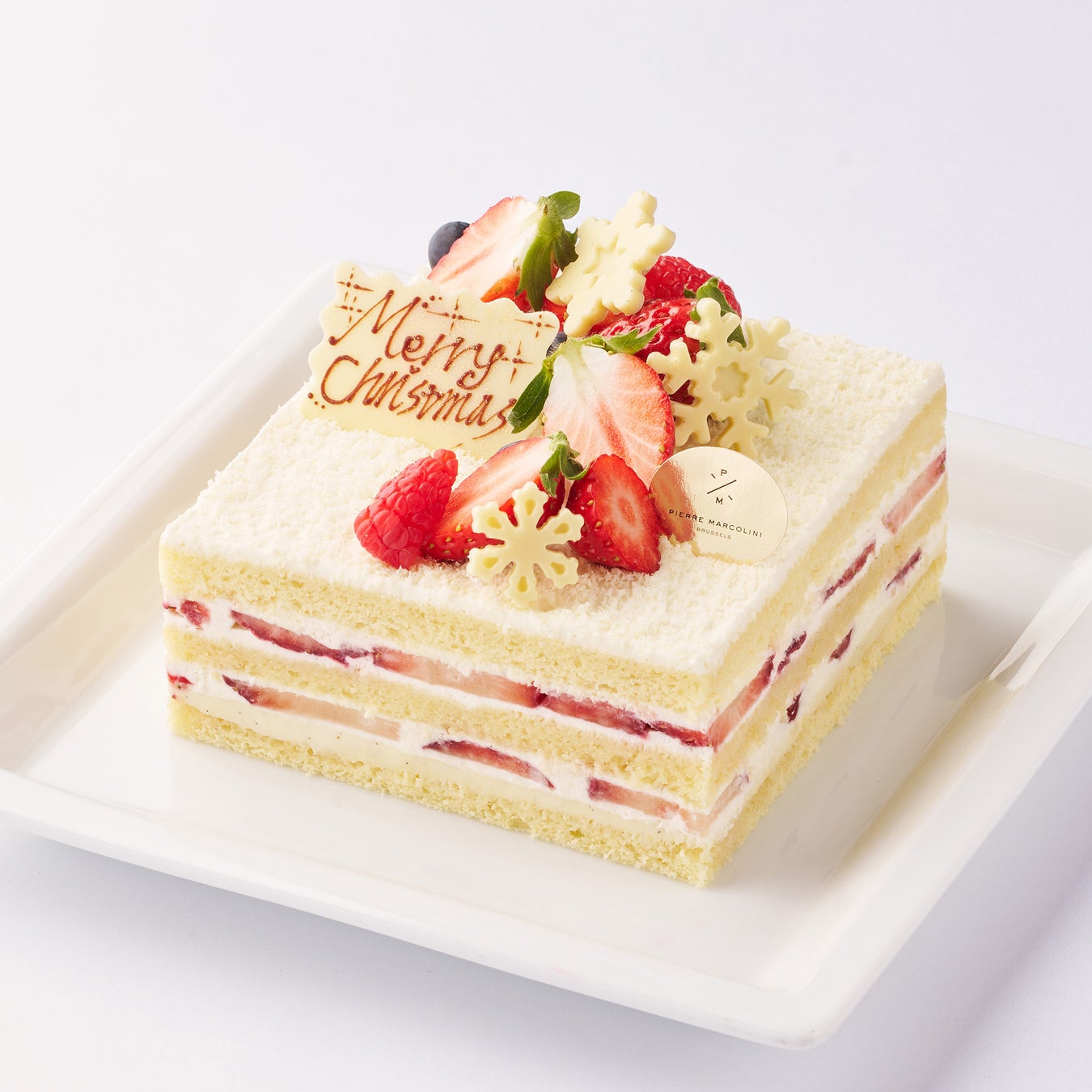 オリジナルクーベルチュールを使用したクラシックなショートケーキ。ホワイトチョコレートのガナッシュと、コクのある北海道産生クリームを贅沢に重ね、雪の結晶のオーナメントを飾りました。