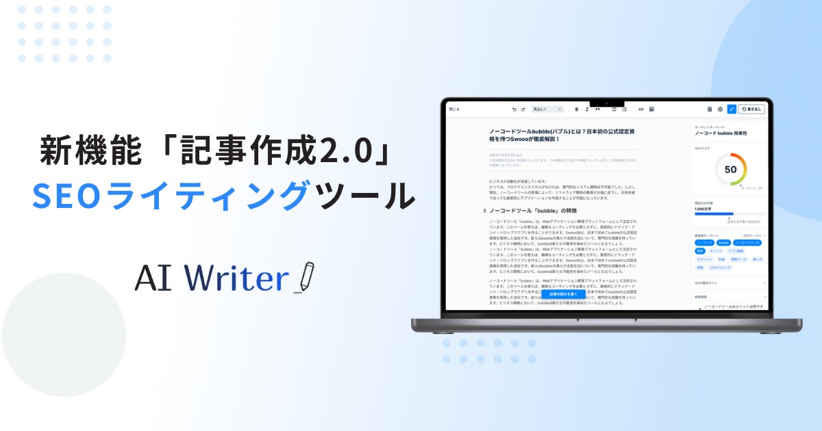 AI Writerがさらに進化!新機能「記事作成2.0」で、より高品質な記事をより簡単に