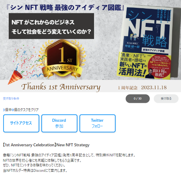 【1周年記念企画】『シンNFT戦略 最強のアイディア図鑑』発売1周年記念、NFT無料配布実施
