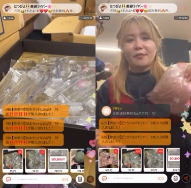 合同会社ピースユー(本社:東京都千代田区、職務執行者:藤瀬公耀)が運営する日本最大級のライブコマースアプリ「Peace You Live」(以下「ピースユーライブ」)は、ECサイトの未使用返品商材などを買い取り、BtoBで自社会員向け販売しているテラセイス株式会社(本社:神奈川県伊勢原市、代表取締役:加藤隆伸)より、訳アリ品など大量の商品在庫をライバーに販売して欲しい、という要望からライバーをマッチング、ピースユーライブのトップライバーとして活躍する『はつぴよ』さんが配信を実施し、大盛況で終了しました。
