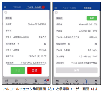 今回は社用車の利用者がアルコールチェックを実施後、その結果をもとに上司もしくは社用車の管理者が、社用車の利用を承認/非承認ができる機能を追加しました。