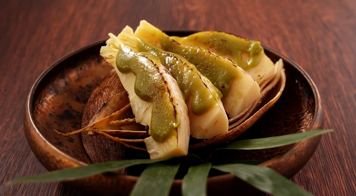 国産にこだわり、たけのこの持ち味を活かした焼き物です。風味豊かなたけのこに合う木の芽味噌をかけ香ばしく焼き上げました。