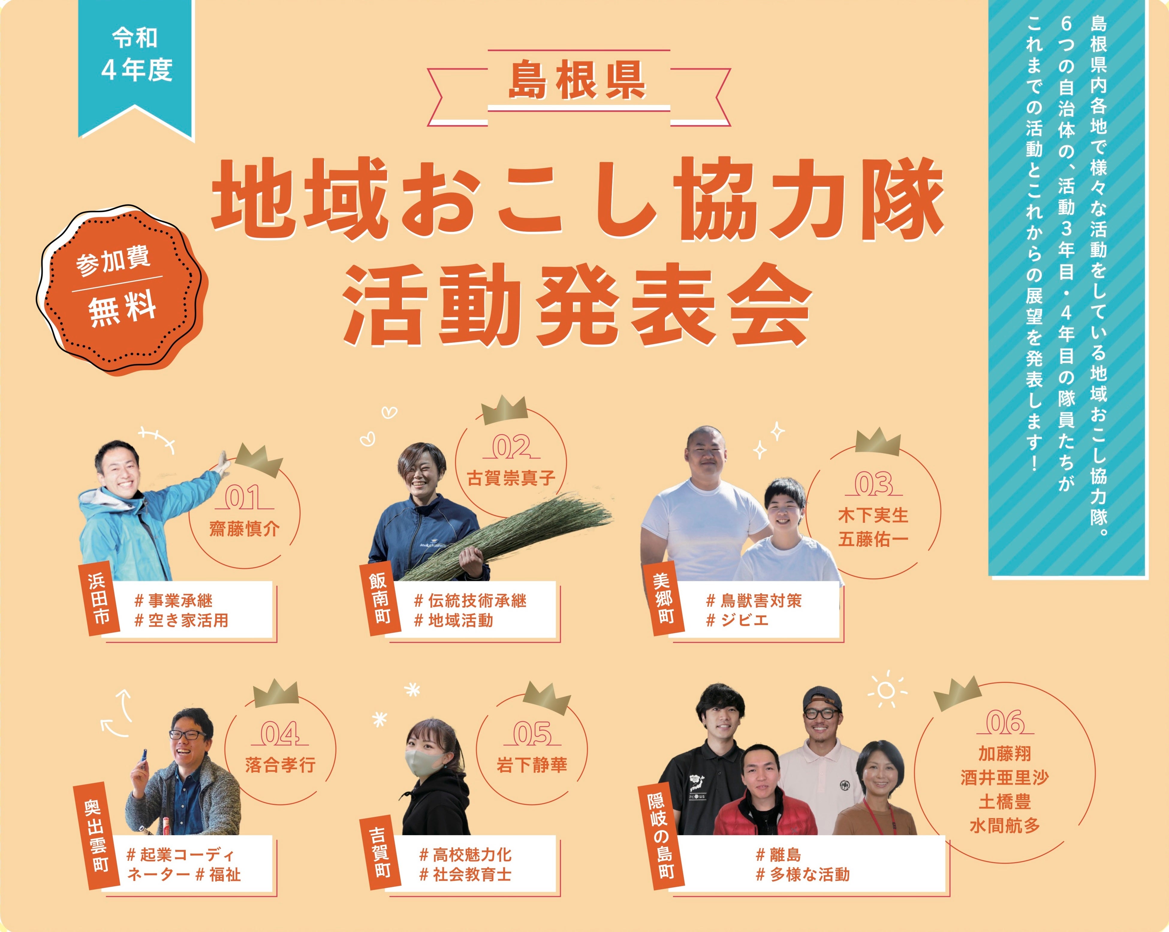 島根県内の地域おこし協力隊(現役隊員・OBOG)、自治体職員、協力隊の関係者、大学生