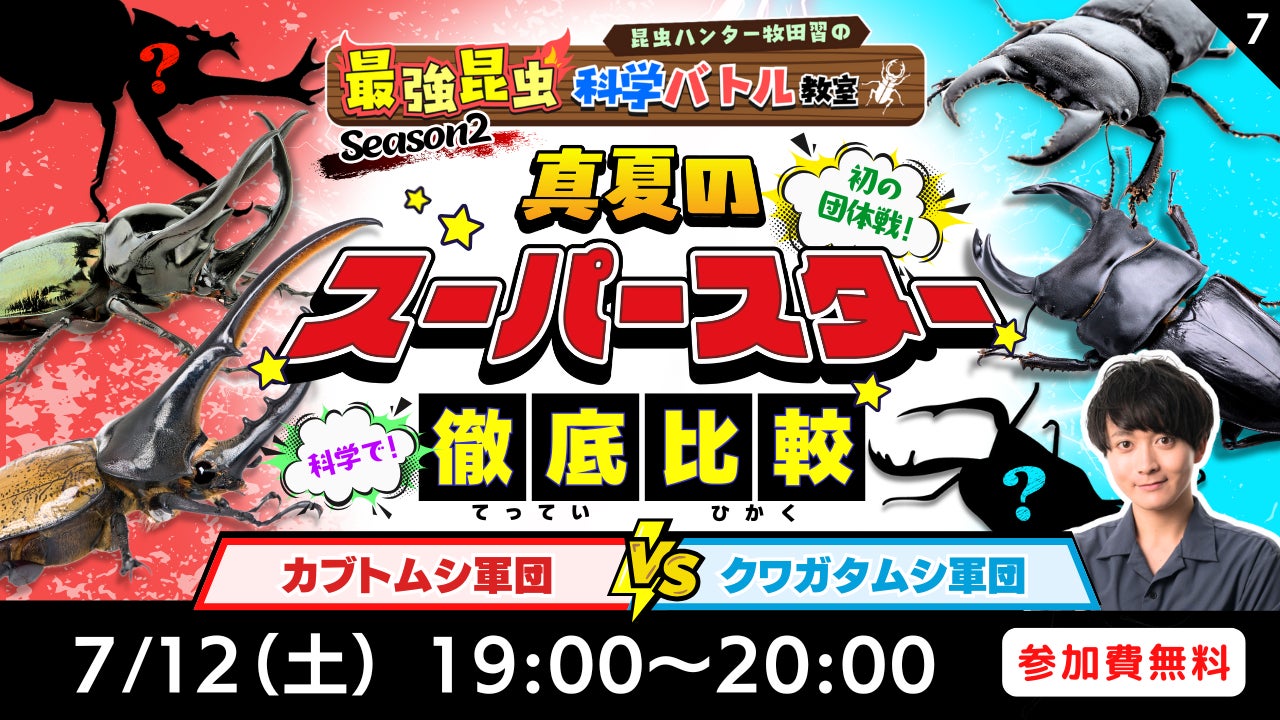 最強昆虫科学バトル教室⑦真夏のスーパースター徹底比較!~カブトムシ軍団vsクワガタムシ軍団~