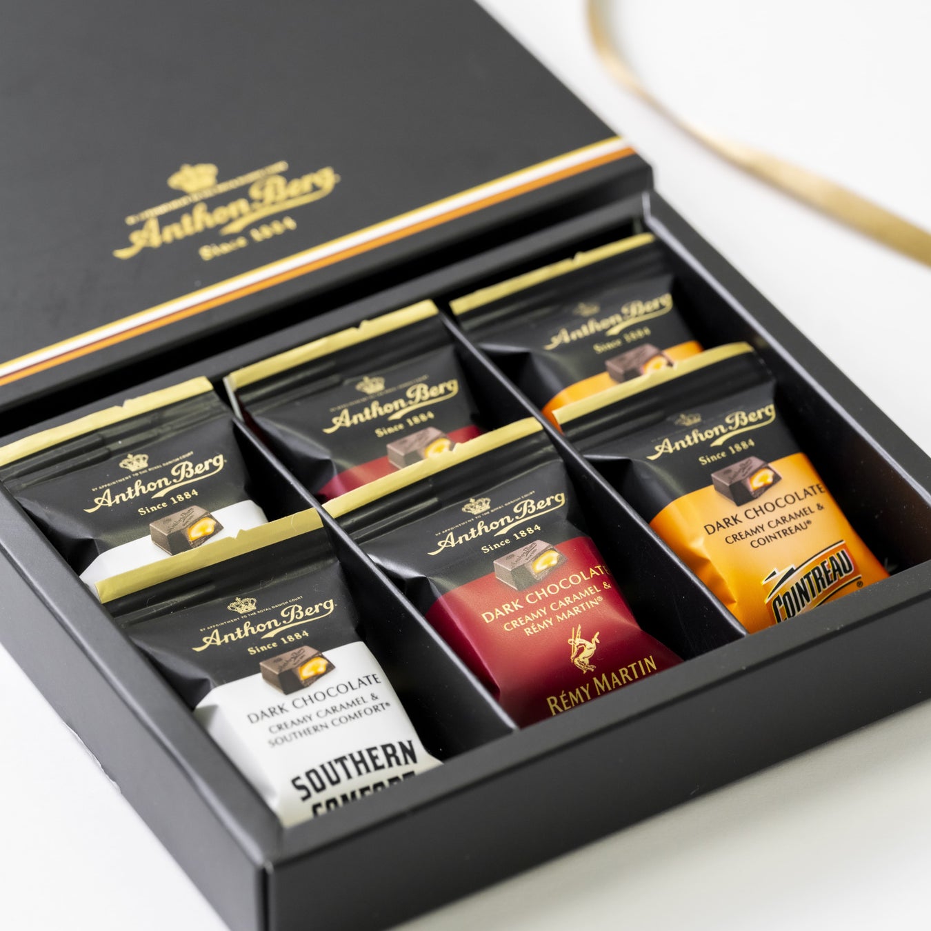 世界の銘酒と、6種類のカクテルをダークチョコレートの中に閉じ込めました。アンソンバーグのコレクションの中でも特に女性に人気のアソートです。