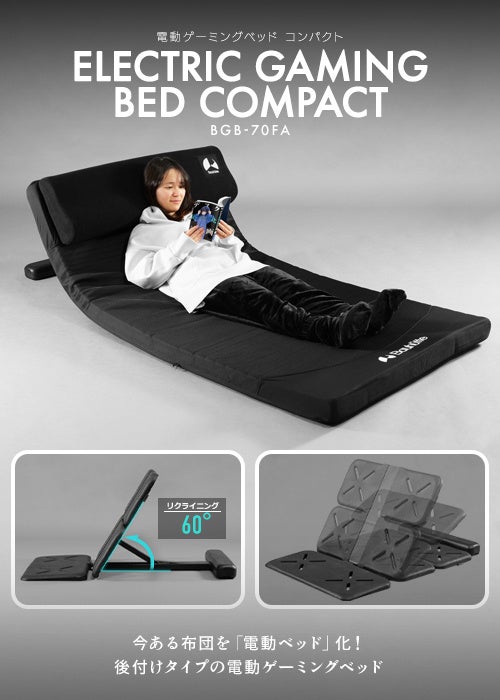 弊社ゲーミング家具ブランド「Bauhutte(R)(バウヒュッテ)」は2025年1月、今ある布団やベッドにリクライニング機能を加える、後付けタイプの電動ベッド「電動ゲーミングベッドコンパクトBGB-70FA」を発売いたします。