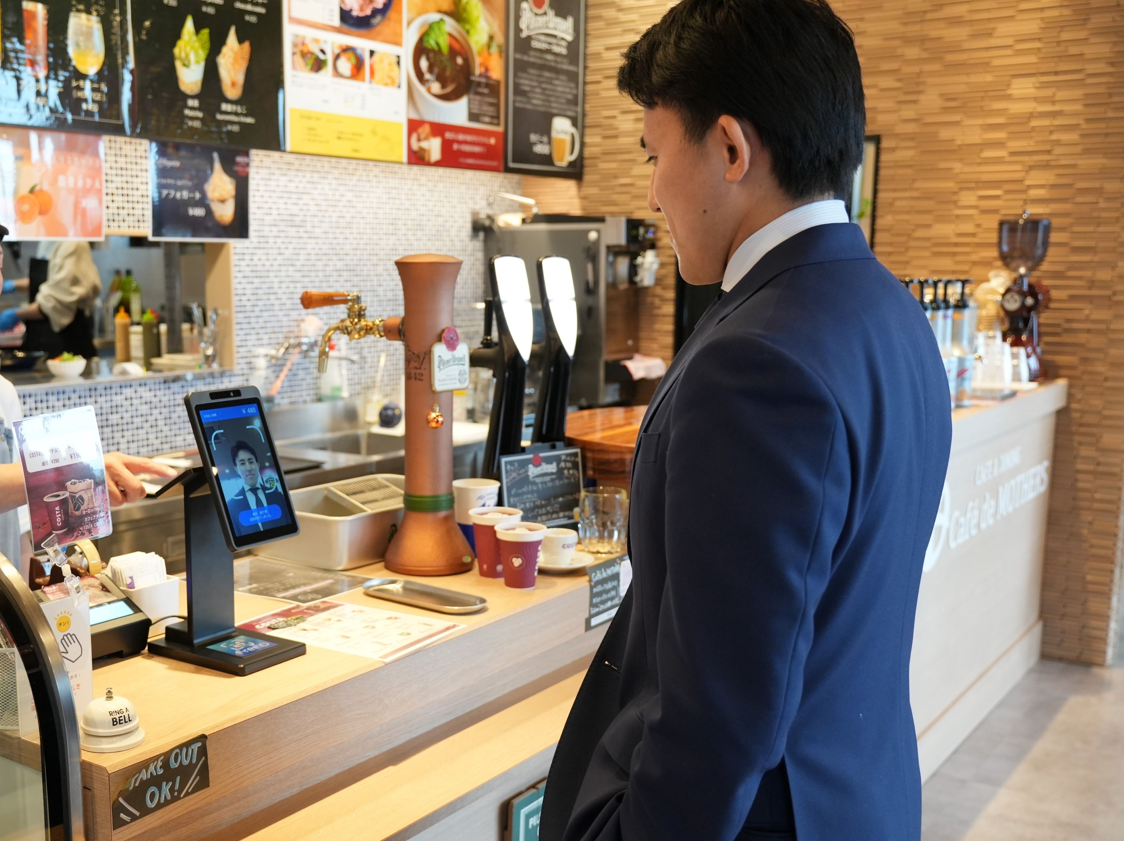 ②顔認証決済端末に店員が金額を手入力