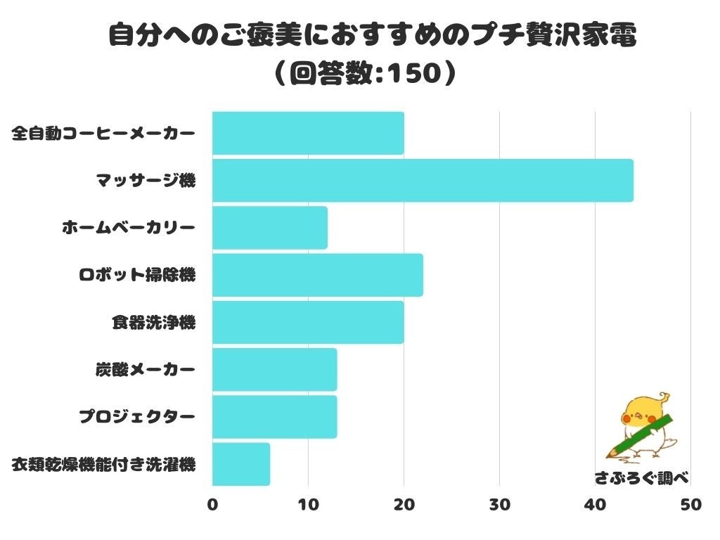 株式会社レビュー(https://jafmate.co.jp/)が運営する暮らしに役立つ情報メディア「さぶろぐ」(https://sublogg.com/)は、日本全国の10歳以上の方を対象に「自分へのご褒美におすすめのプチ贅沢家電」についてのアンケート調査を実施しました。