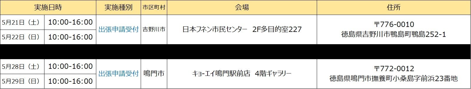 ※開催場所の調整状況や新型コロナウィルスの感染状況等により、「出張申請受付」及び「出張申請サポート」の開催を中止・延期、または実施内容が変更となる可能性がございます。