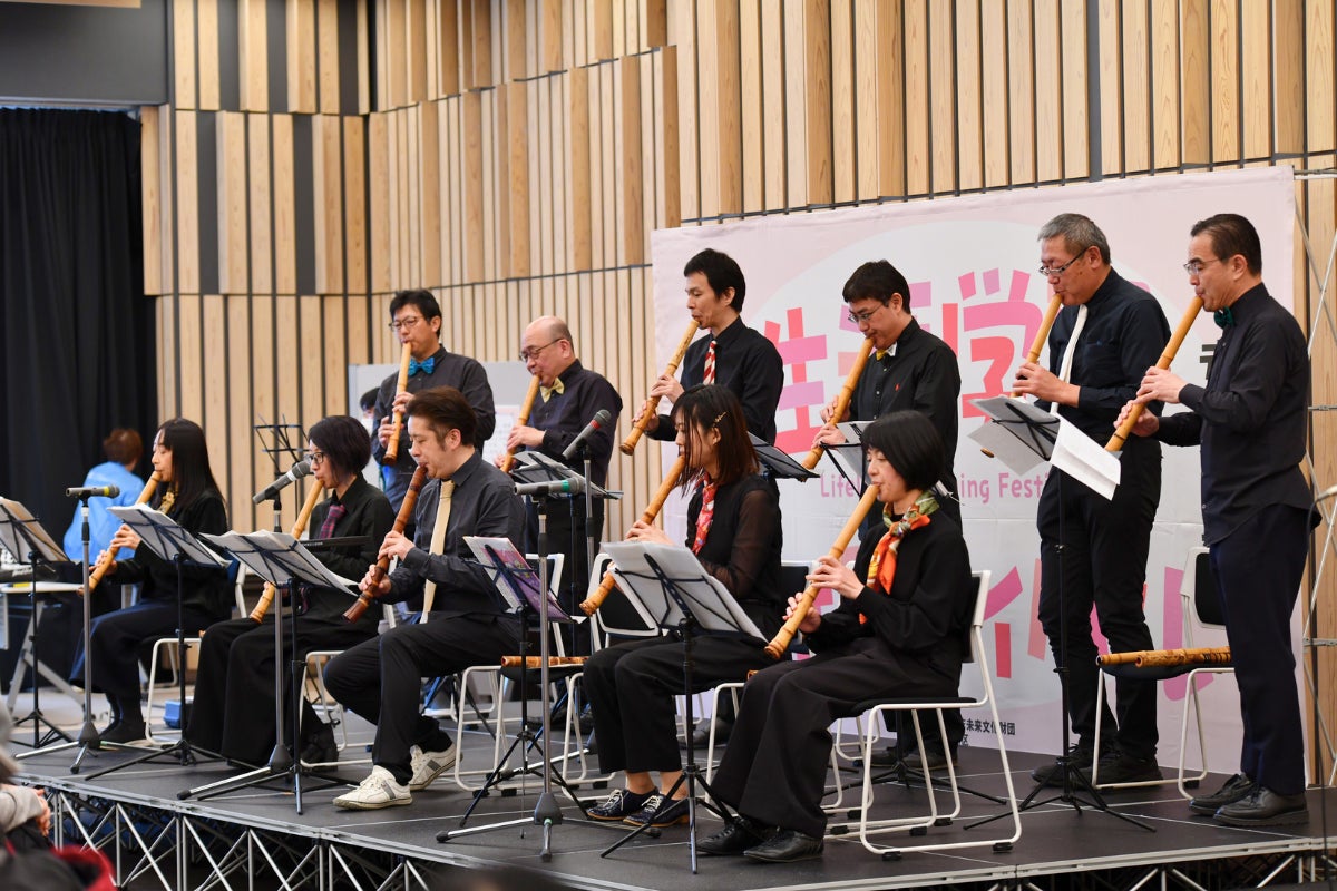 心に染み渡る【尺八サークル待夢】の演奏や【音楽倶楽部「楽しい音」】による温かいアンサンブル