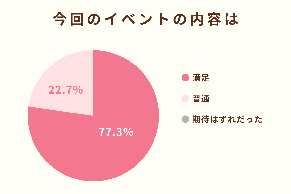 ※「今回のイベントの内容は」アンケート回答:「満足」77.3%、「普通」22.7%より