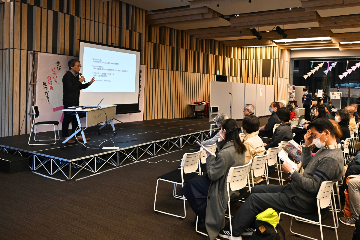 また、講演会では、大正大学教授・東京大学名誉教授の牧野篤(まきのあつし)氏が「よきこと」をつむぐ、「よき存在」になる― みんなの「ふるさと」をつくる社会教育・生涯学習―をテーマに登壇。これからの時代の地域コミュニティの重要性を語り、多くの聴衆が熱心に聞き入っていました。