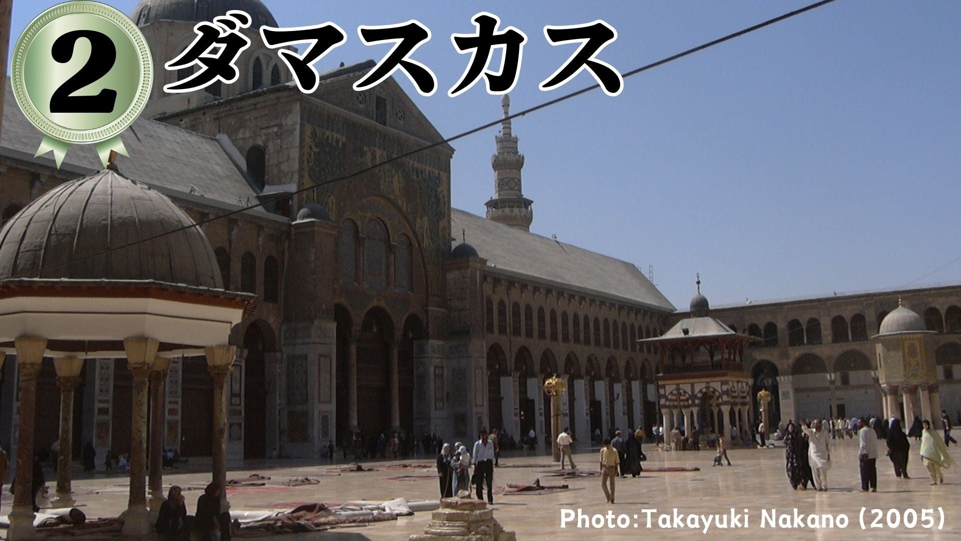 ・現在の世界中の都市の中で、最も古くから人類が住んでいる街。ウマイヤド・モスクは、アラブ各国から敬虔なイスラム教徒が巡礼に来て、涙を流しながら礼拝していて、宗教の力を思い知らされます。装飾やレリーフの素晴らしさと中庭のピースフルな雰囲気が大好きです。子供達がボールを蹴ったり走り回ったりしてるのが印象的です。石の床がピカピカでたくさんの人の素足で磨かれてきたことに歴史を感じました。