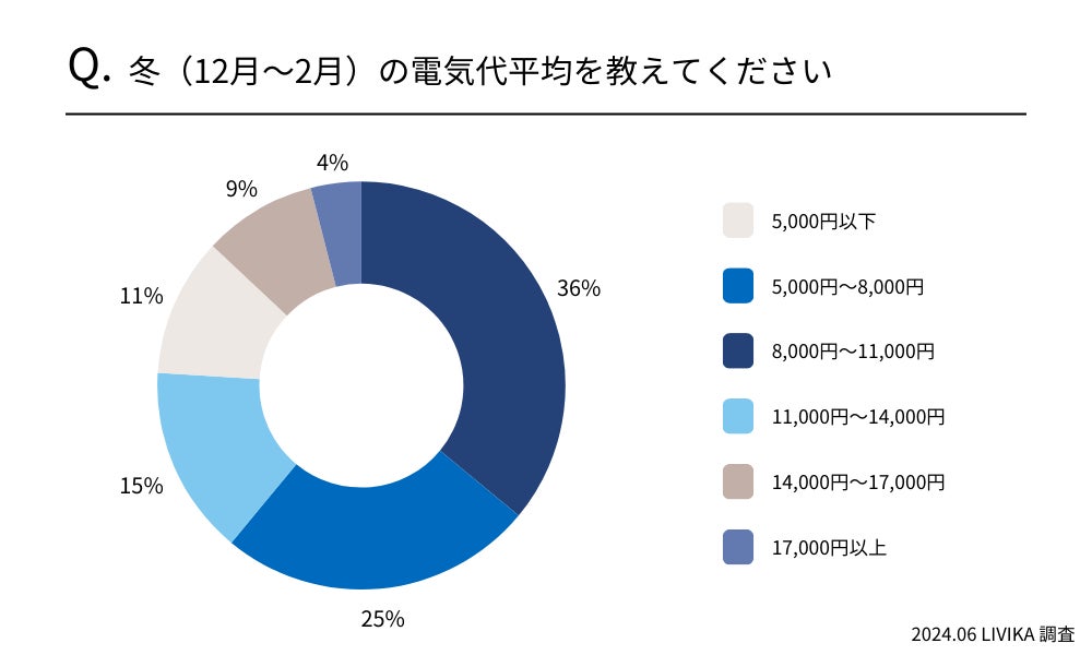 冬の平均電気代は36%が「8,000円〜11,000円」と回答しました。