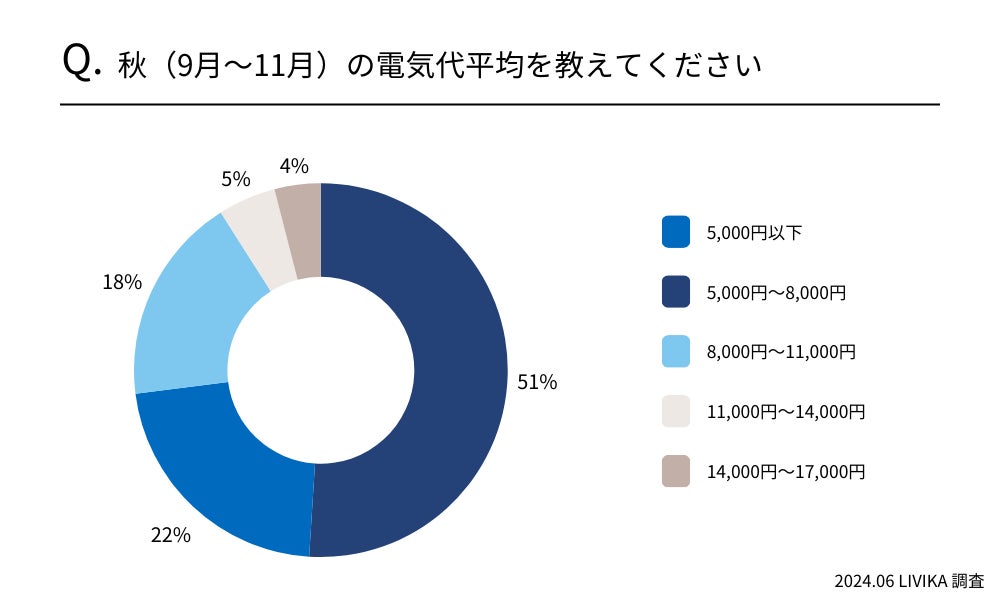 秋の平均電気代は半数以上の方が「5,000円〜8,000円」と回答しました。