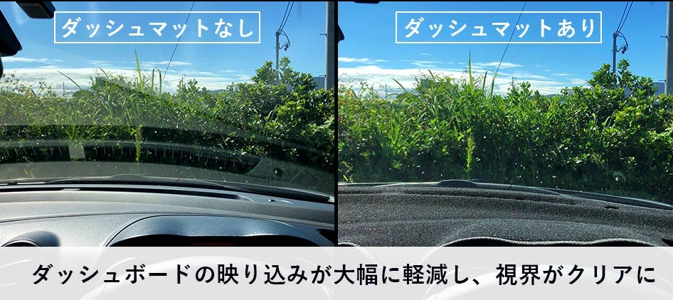 ダッシュボードマットを敷くことにより傷や汚れを防ぐことはもちろん、紫外線による劣化を防ぐことができるほか、フロントガラスへのダッシュボードの映り込みを改善して運転時のストレスを低減、夏の車内空間の急激な上昇を低減する断熱効果も期待できます。