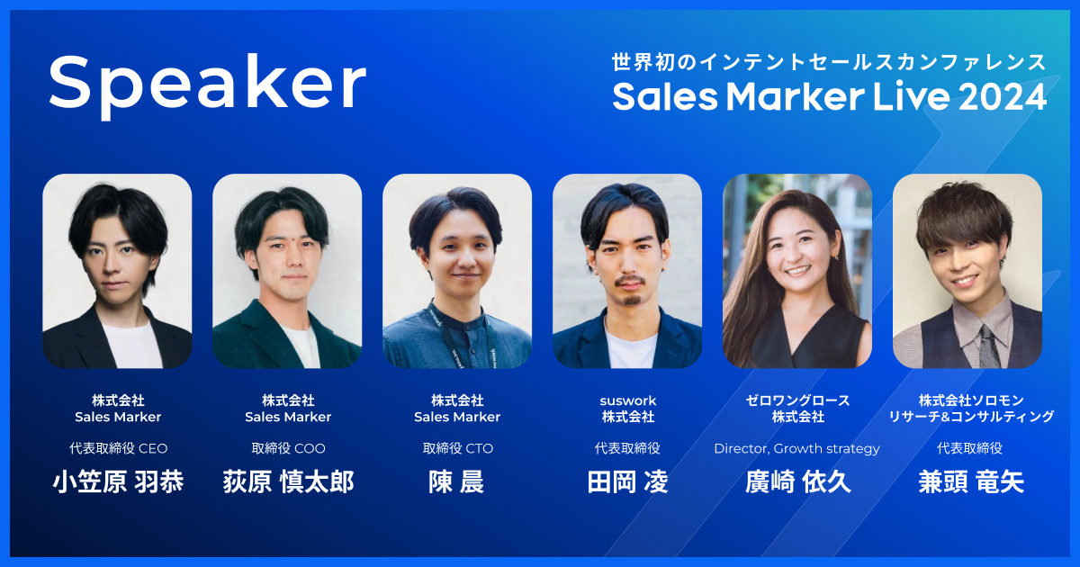 株式会社Sales Markerは「全ての人と企業が、既存の枠を越えて挑戦できる世界を創る」をパーパスに掲げ、最新のテクノロジーやデータを活用することでビジネスにおける最適で素早い意思決定を可能にするスタートアップ企業です。インテントデータを活用して、まさに"今"欲しいと思っている潜在顧客に対して、AIが自動でセールスアプローチを行う『Sales Marker』を提供しています。インテントセールスを通じて営業・マーケティング領域における課題解決を実現します。