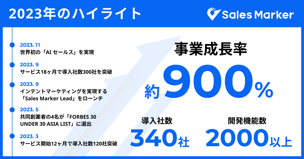 『Sales Marker』は2023年1年間で2,000以上の機能追加をしてきましたが、そのうち3割はユーザー様からのフィードバックによるものです。日本初となる新しい営業手法「インテントセールス」が、わずか2年で市場に広く浸透した背景には、ユーザー様と共に『Sales Marker』を進化させてこれたことにほかなりません。