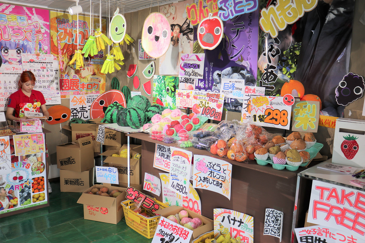 約1年を費やし、宮城県から沖縄県まで全国40か所以上の果物にまつわる商店、施設を取材し制作しており、ポスター、手描きポップ、布作品、まんが、イラスト、立体物等を使い、商品や内装など果物屋を細部にわたり再現した、個性あふれる展示となっている。