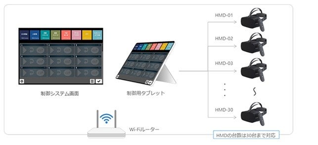VR(HMD※3)一括制御システムにより、研修講師が研修受講者の閲覧する映像を一括で制御します。