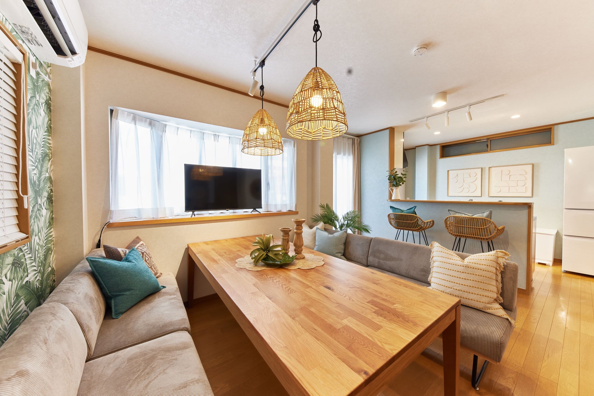 当施設は合計3部屋のベッドルームを備えており、最大10名までの宿泊が可能です。この一軒家スタイルの民泊は家族や友人など大人数でのグループ旅行でもプライバシーが保てる設計なのでグループ旅行者に非常に人気です。各居室は温かみある照明やインテリアで設計されており、旅の疲れを癒し、心からくつろげるひとときを演出します。和洋どちらの文化にも馴染むニュートラルなデザインが、国内外問わず幅広い層にご利用いただける仕様となっています。