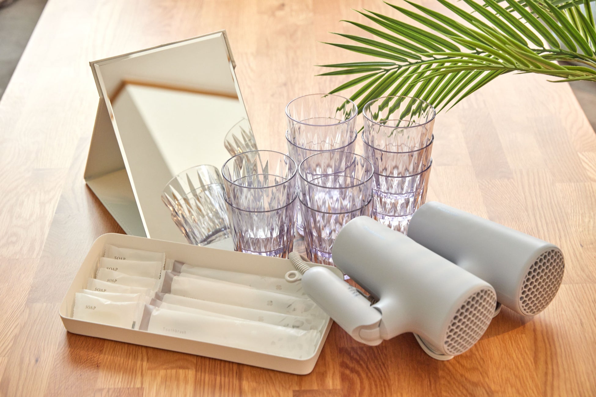 また、浴室のシャワーヘッドには最新の「ReFa」のシャワーヘッドを採用。シャンプーやコンディショナーなどのアメニティはPOLAで統一。女性に嬉しいラインナップをご用意しております。