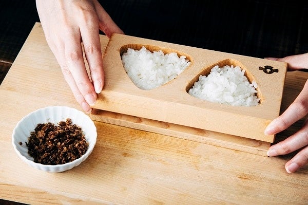 ひのきのよい香りでごはんを包むおにぎり型は、お米の余分な水分を吸収し、ごはんをより理想的な味にします。三角型は大小2サイズ展開で、大きくにぎれば空腹をしっかり満たす強力なお供に、小さくにぎればいろんな味を楽しめます。