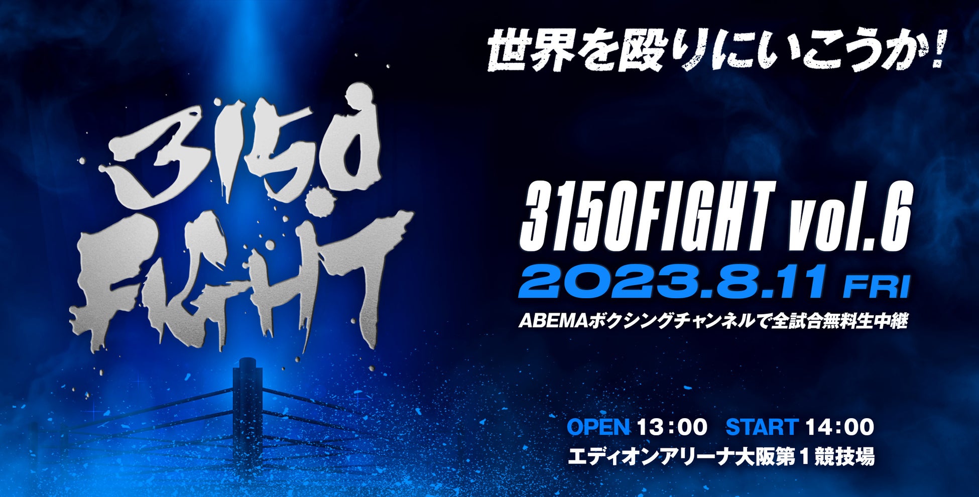「3150FIGHT」シリーズの次回大会は、8月11日(金・祝)、エディオンアリーナ大阪第1競技場にて「3150FIGHT vol.6」を開催し、ABEMAにて全試合生中継する。