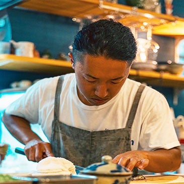 1994年三重県熊野市出身。幼少期より大自然に囲まれて育ち、釣りや魚突きに親しむ。修行先を求めて全国各地を旅したのち愛媛県の老舗生簀料理屋にて師と出会い、魚の獲り方や調理を本格的に学ぶ。より専門的な知識を学ぶため、他多数の店舗で研鑽を積み、2018年ニュージーランドで日本食レストランを期間限定オープン。2020年世界遺産の地である熊野へ帰郷し「食堂あお」を開業。海や川、山へ狩りに行くという独自のスタイルで、市場には出回らない食材を提供している。
