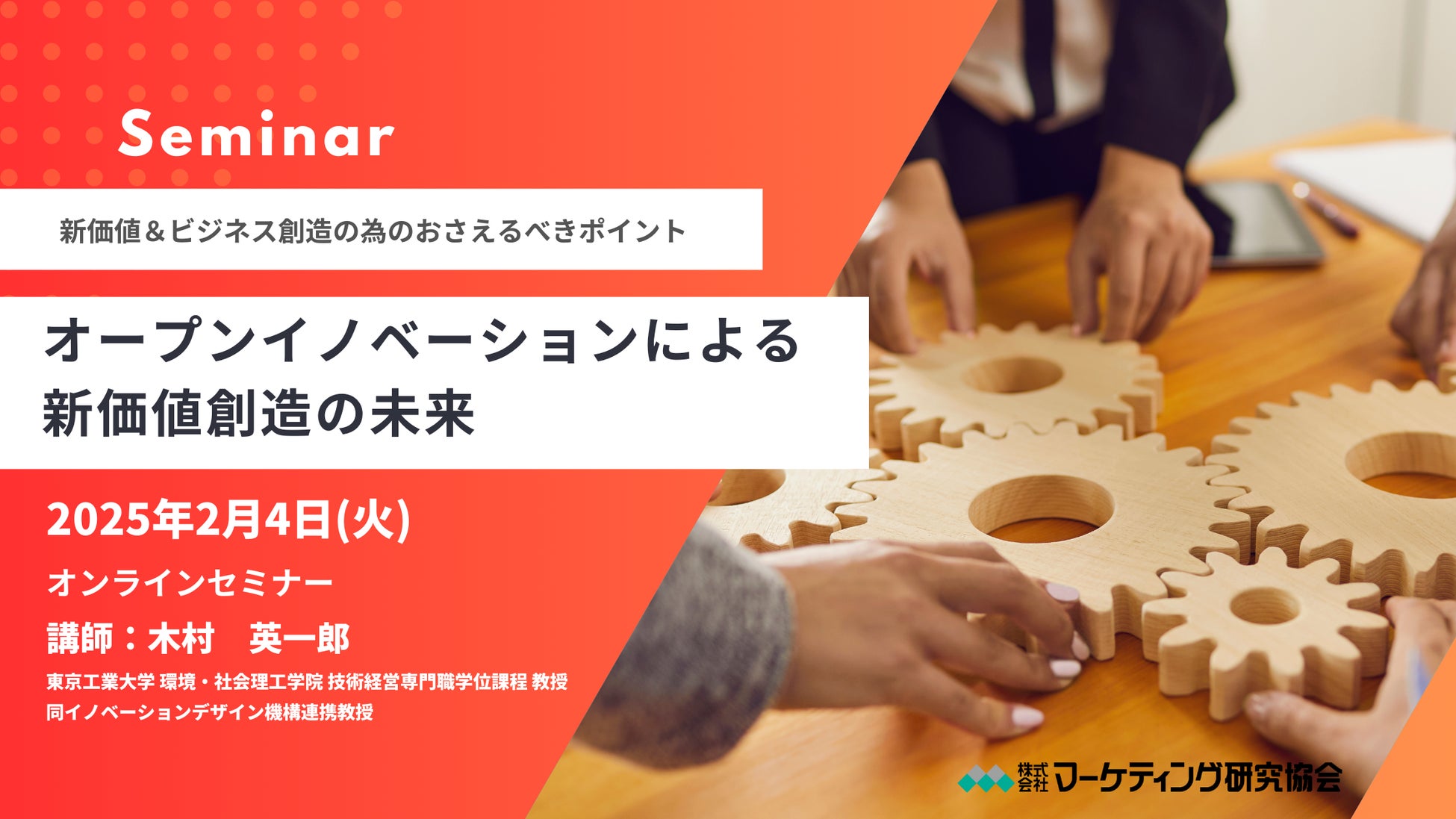 株式会社マーケティング研究協会は2月4日、オンラインセミナー「日米の先行事例に学ぶ!オープンイノベーションによる新価値創造の未来~新価値&ビジネス創造の為のおさえるべきポイント~」を開催します。