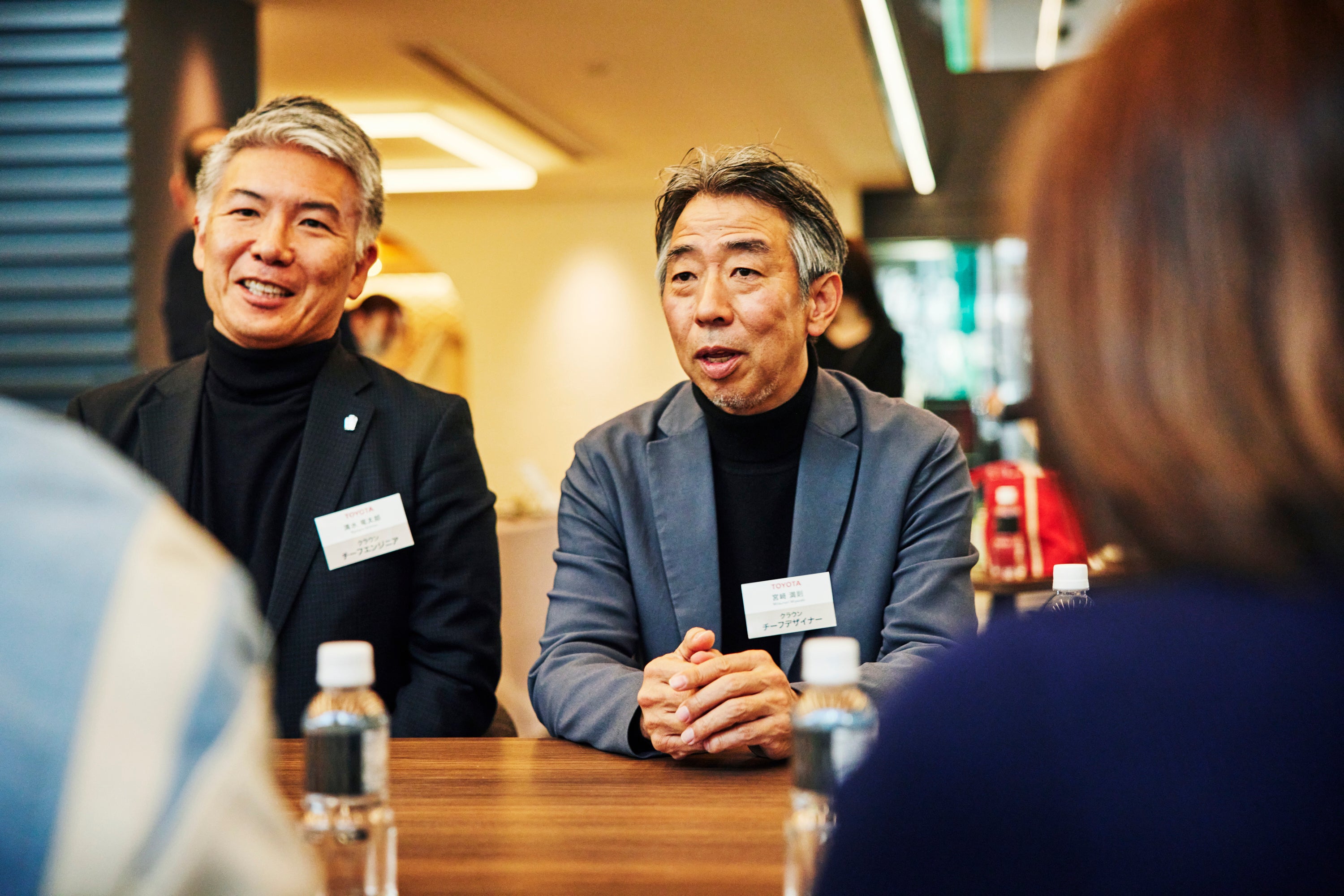 多くのご応募をいただいた中から抽選で選ばれた合計12組のお客様に、すでに販売中の新型クラウン3モデルの乗り比べ試乗を体験いただきました。試乗の前にクラウンシリーズ開発責任者の清水チーフエンジニアをはじめ、クラウン(スポーツ)・クラウン(エステート)を主に担当した本間主査、新しいボディタイプのデザインを実現した宮﨑チーフデザイナー、車両性能開発を担当した多和田主査より、16代目で新時代のクラウンを目指した開発背景や、選択肢を増やしたパワートレインの特徴、ボディを活かした乗り味の作りこみなど、新型クラウンに向き合ってきた開発陣の想いやこだわりをお伝えしました。