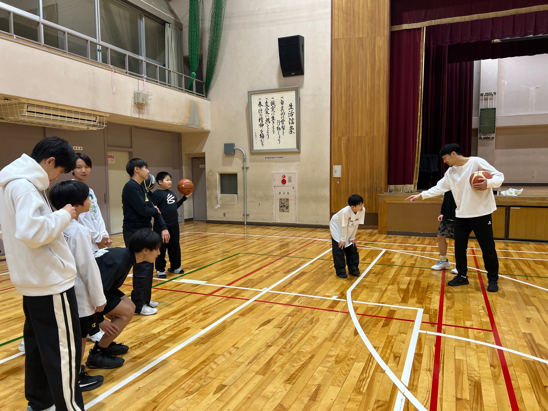 本多選手が、ミニバスケットボールチームや中学生年代チーム、中学校のバスケットボール部と、様々なチームを訪問し、バスケットボールにおけるファンダメンタル(基礎)や、ハンドリング、プレーの中でのボールの受け方や姿勢などの様々な技術を、練習の中で熱く指導いたしました。