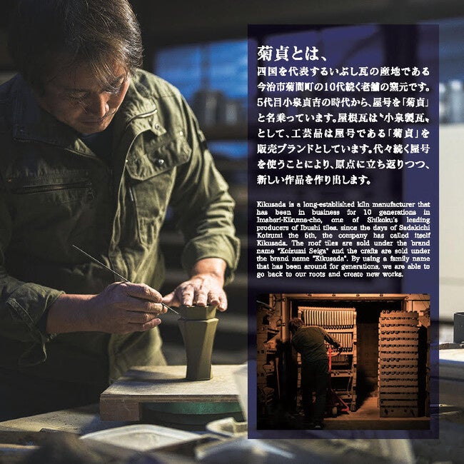 菊間瓦製のサウナストーン「鬼丸・鬼玉」の開発・デザインにご協力頂いたのは、四国を代表するいぶし瓦の産地・今治市菊間町で10代続く老舗の窯元「菊貞」創業300年以上の歴史をもつ、「菊貞」ブランドを展開する小泉製瓦有限会社です。