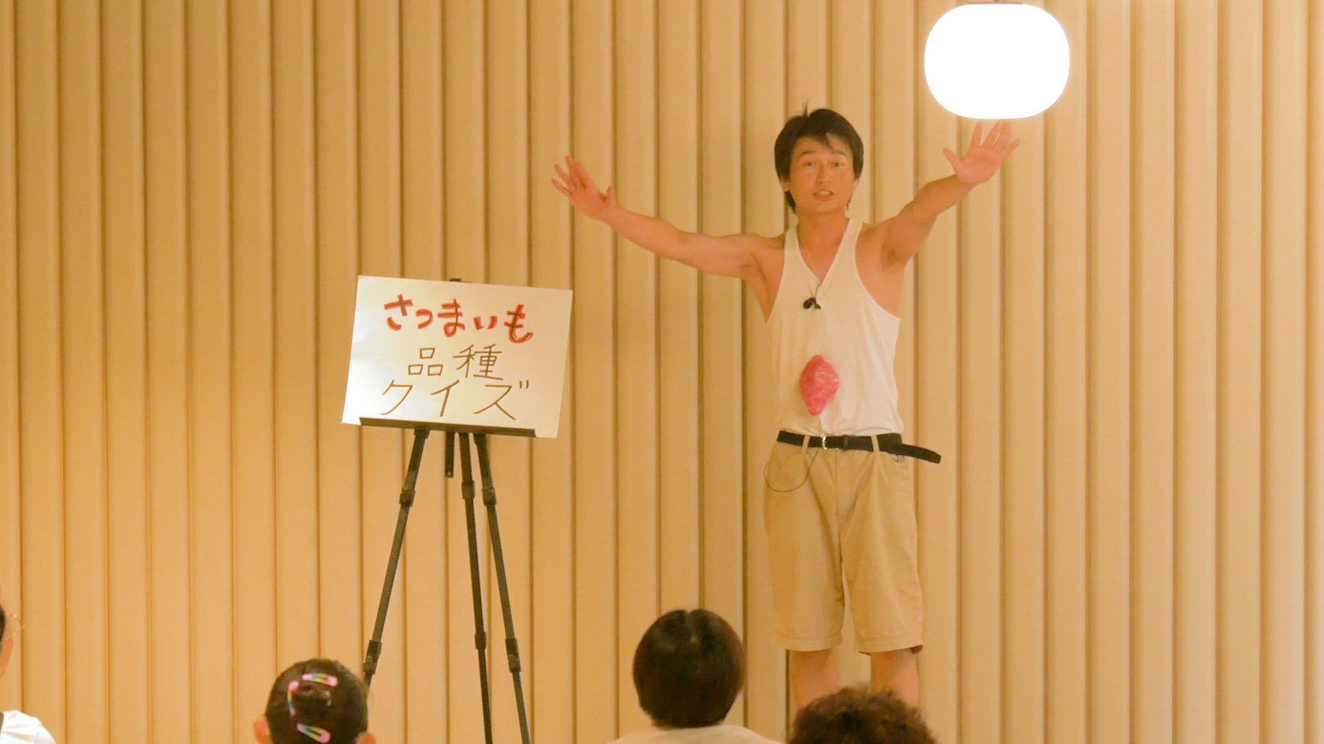 キャッチーな音楽とダンスのさつまいも品種クイズを披露し、参加者とのコール&レスポンスで会場が一体となりました。