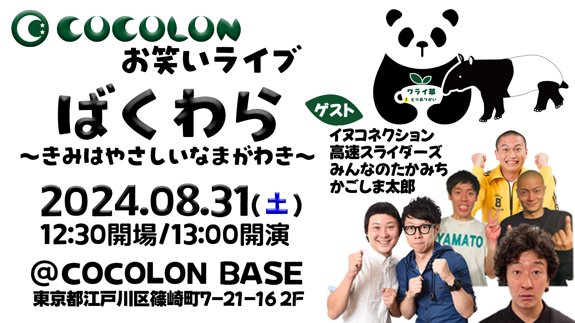 重症心身障がい児のと家族や支援者向けに学び・遊び・情報を提供をする「COCOLON」(運営:特定非営利活動法人EPO、東京都江戸川区、代表:齋藤えりか)は、2024年8月31日(土)にCOCOLON BASE(東京都江戸川区)でインクルーシブお笑いライブ「ばくわら」を開催しました。6組19名が現地参加しハイブリッド配信でも参加いただいたイベントの開催レポートを発表します。