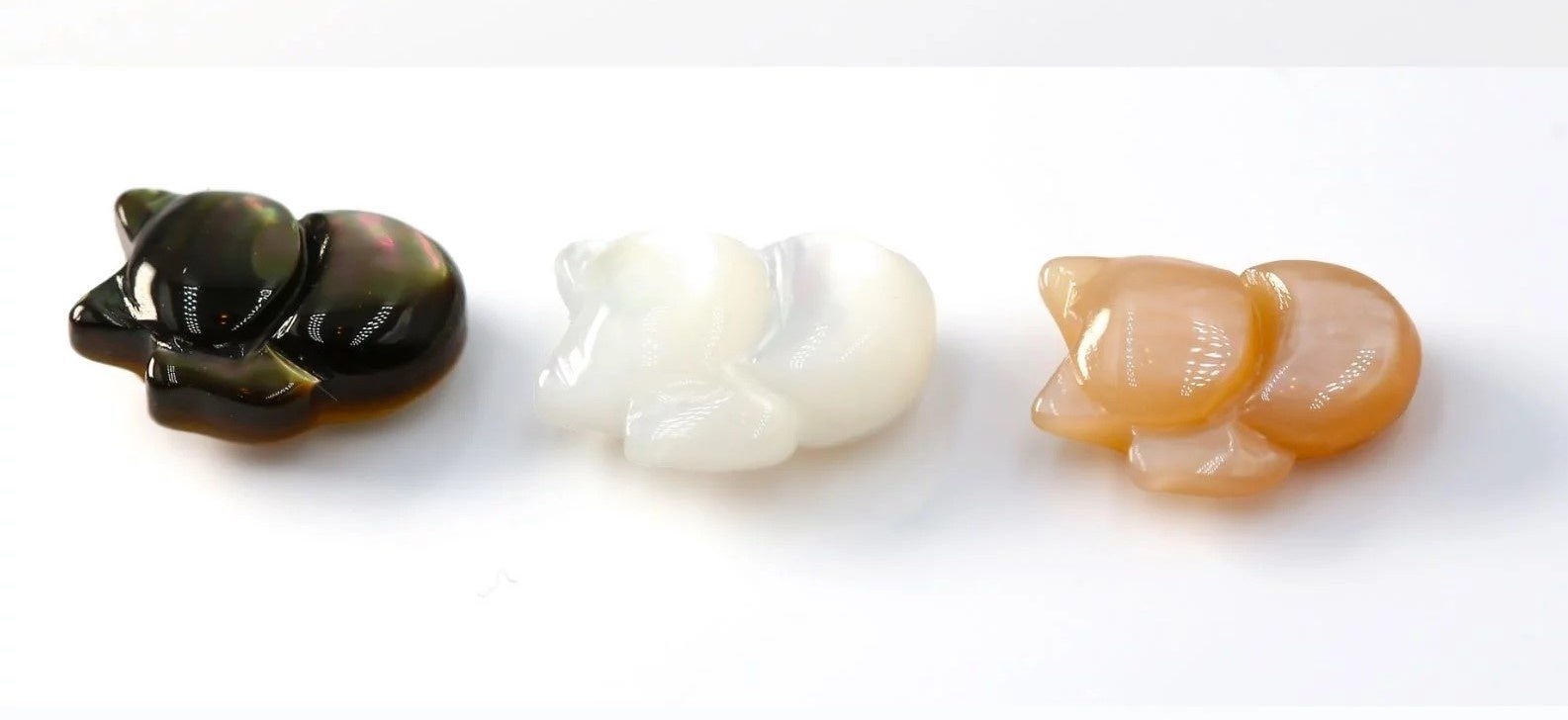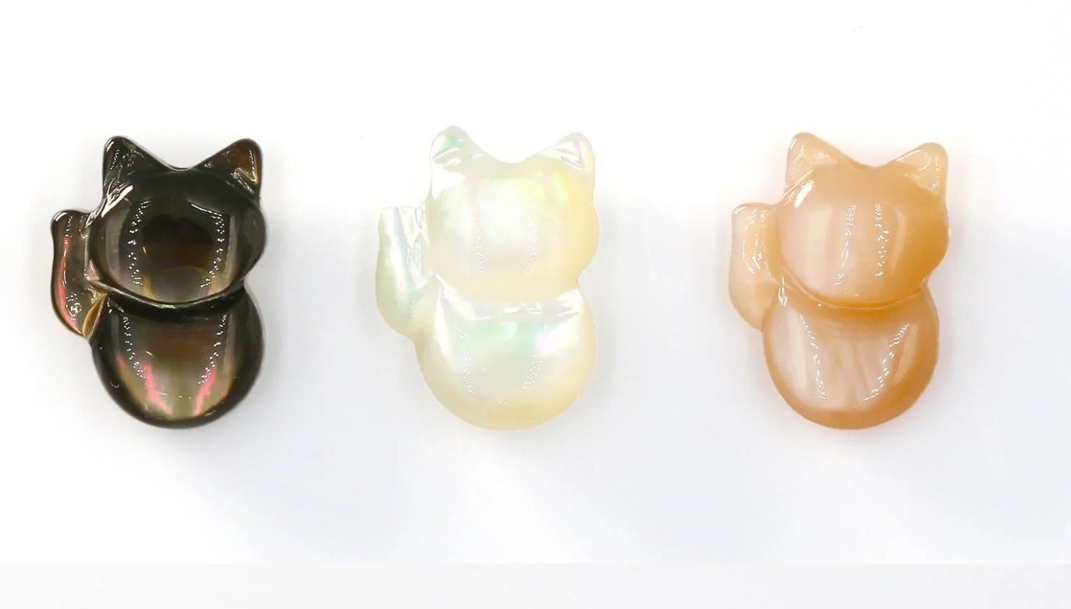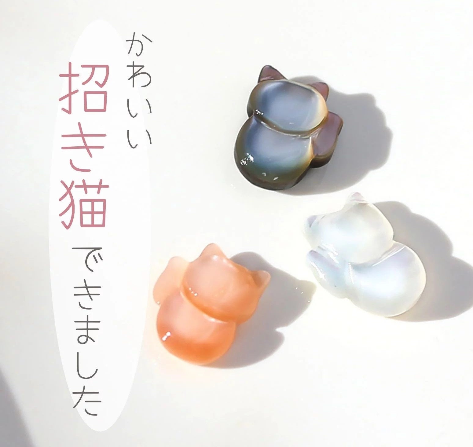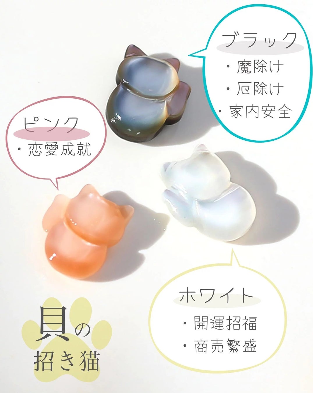 ぷっくりかわいい招き猫はシェルで作りました。シェルは海から産出される貝のことをいいます。母なる海から産まれるというイメージから、まるで母親に包まれているような、温かく落ち着く感じを得ることができます。