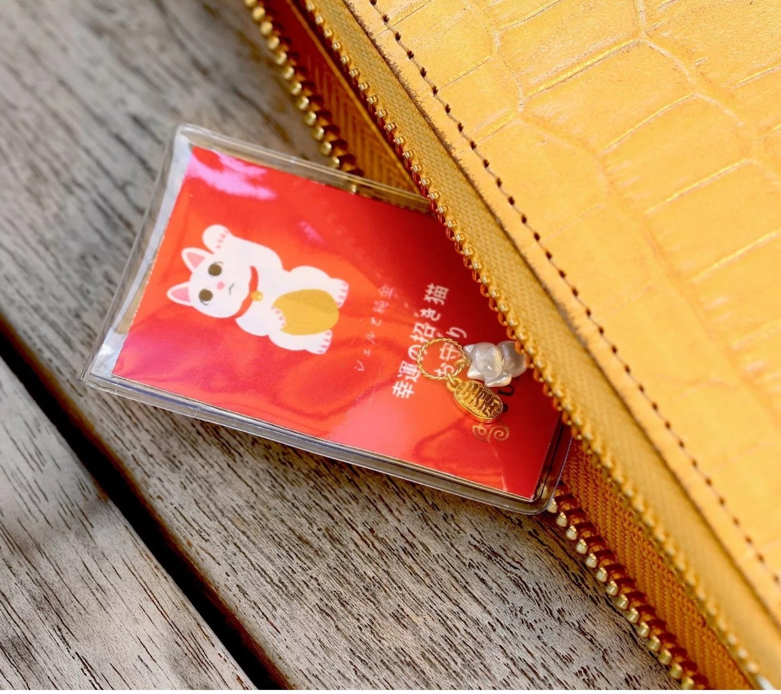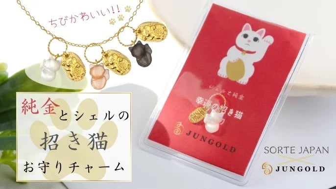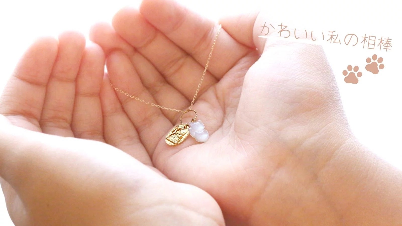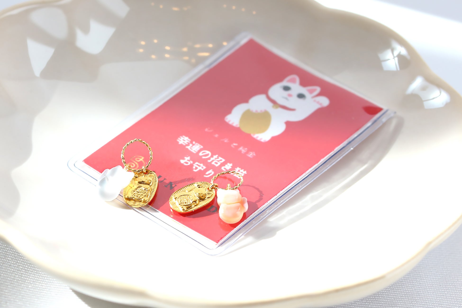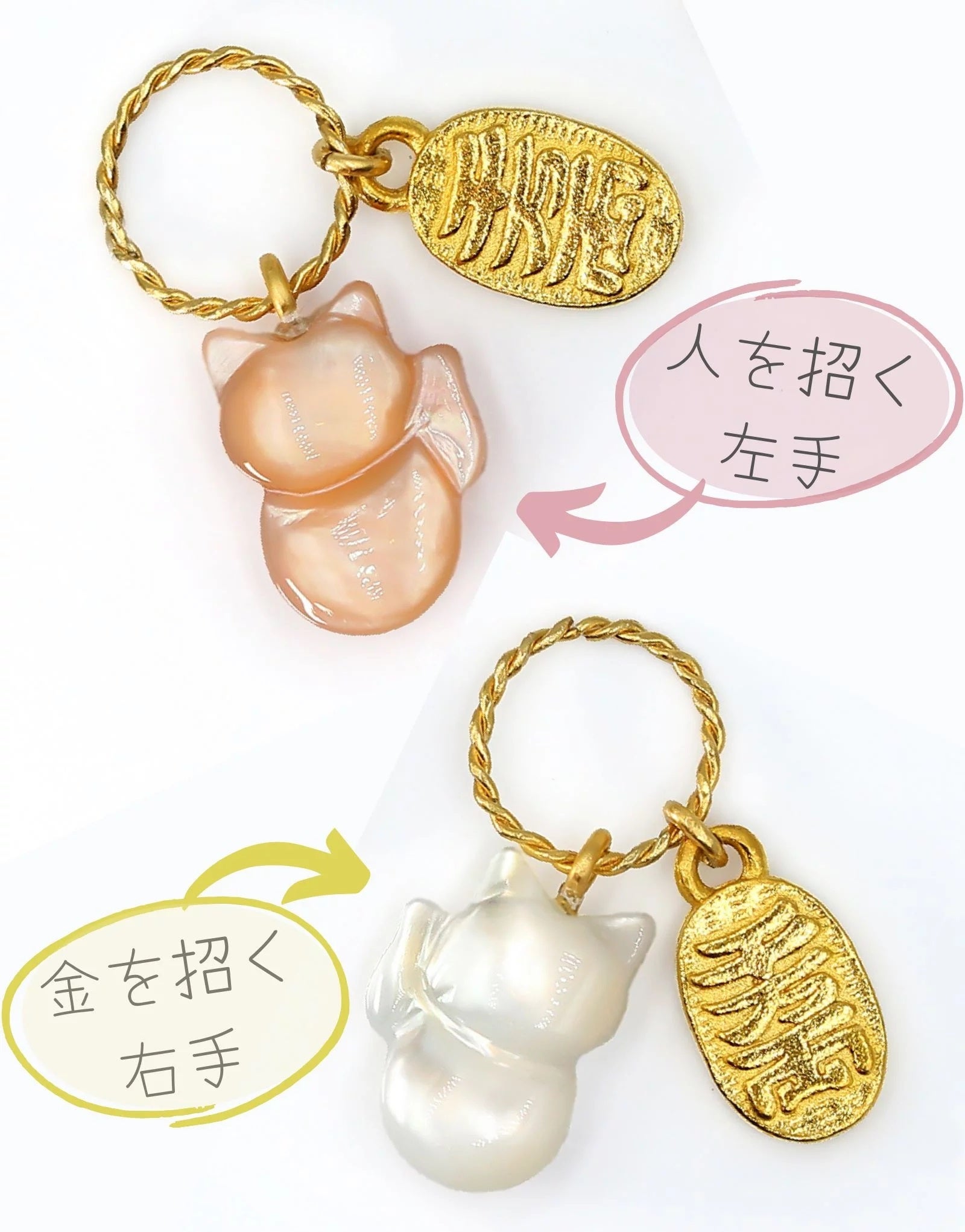 人とお金を招く可愛い可愛い猫の相棒!シェルの招き猫と「純金」小判のチャームをお守りに!
