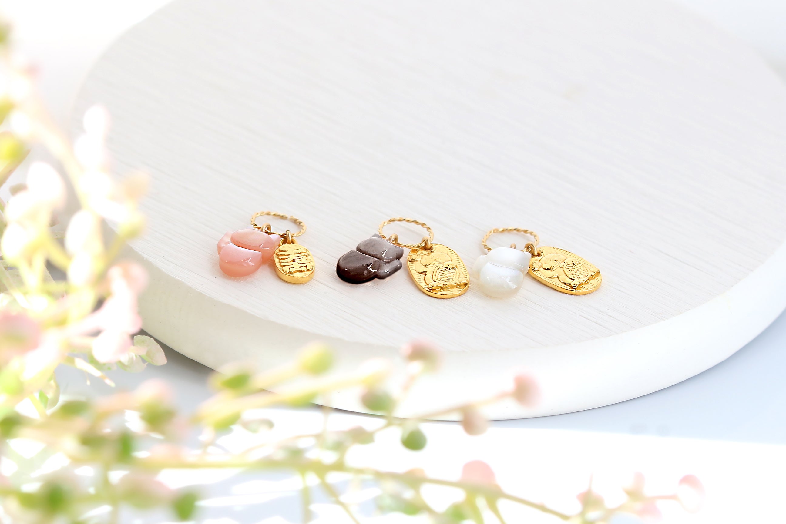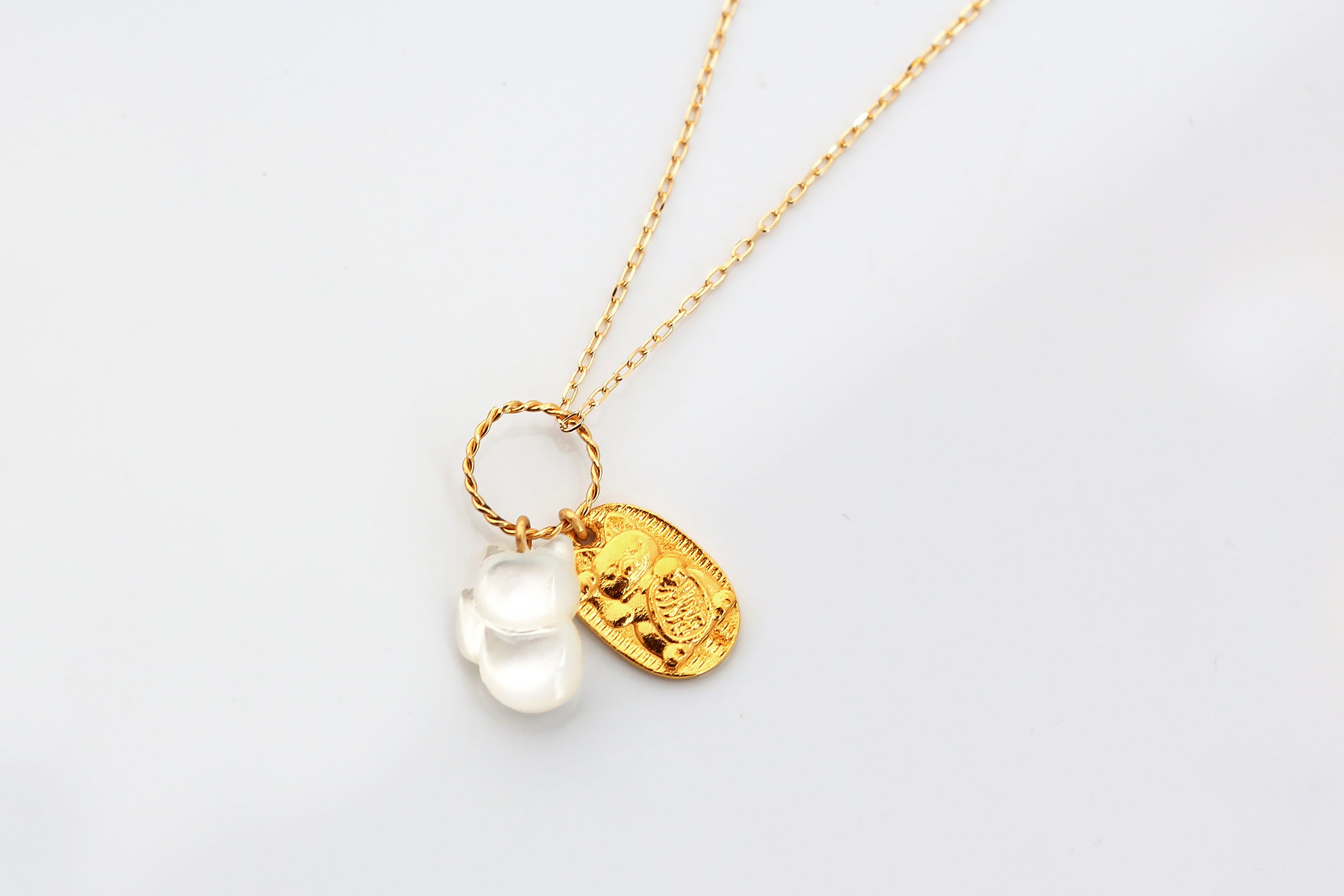 【シェルの招き猫と「純金」小判のチャームをお守り】