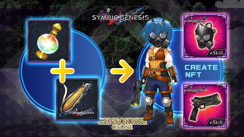 今回のコラボイベントは、「SYMBIOGENESIS」と「元素騎士オンライン」両サービスのイベントで入手できるNFTを集めて、限定コラボ装備NFTをNFT合成で制作いただくという内容です。