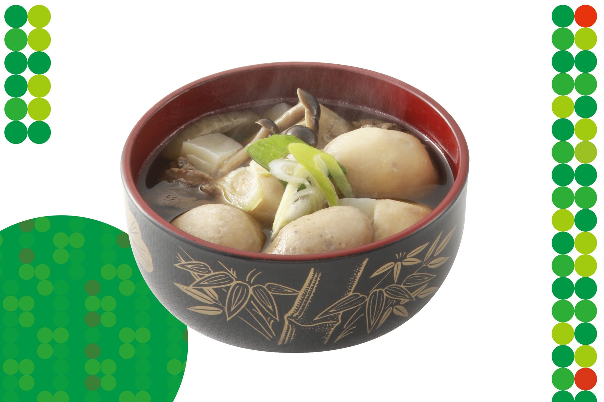 山形県産のタケノコや里芋、金華豚チャーシューにワンタンメンが入った山形づくしの一品。